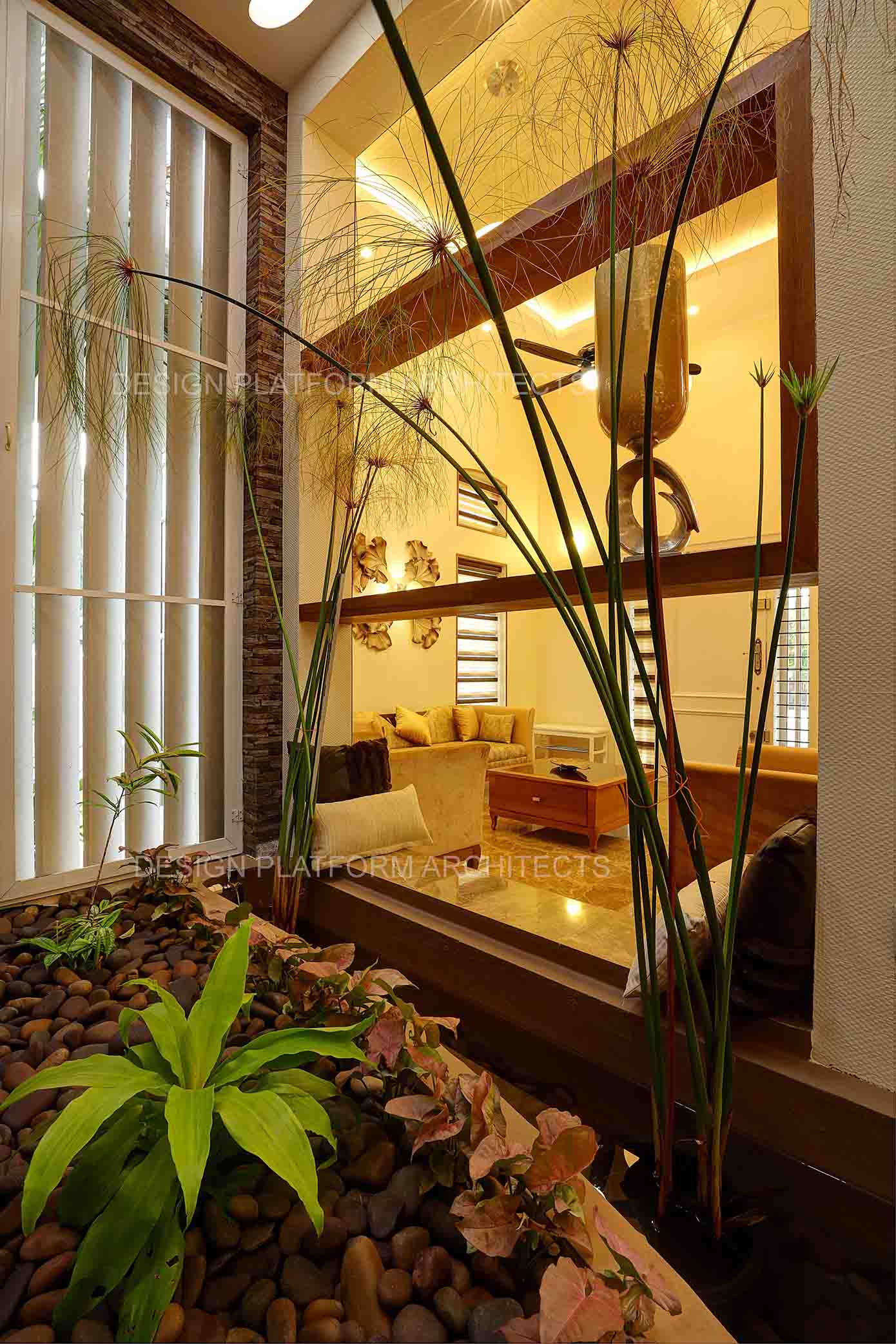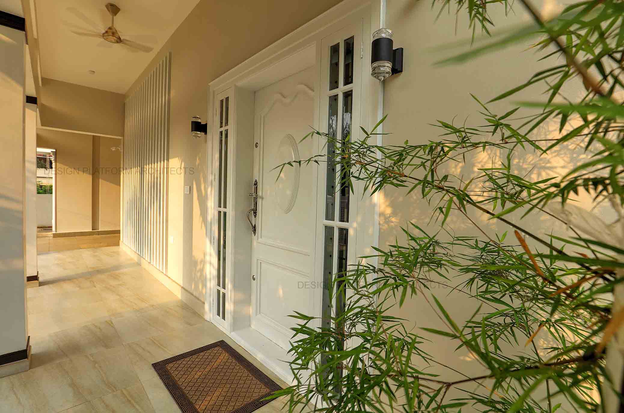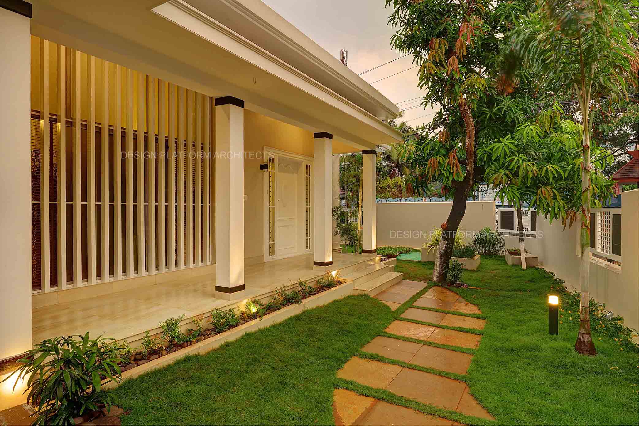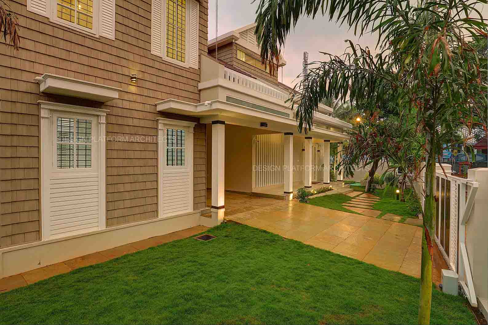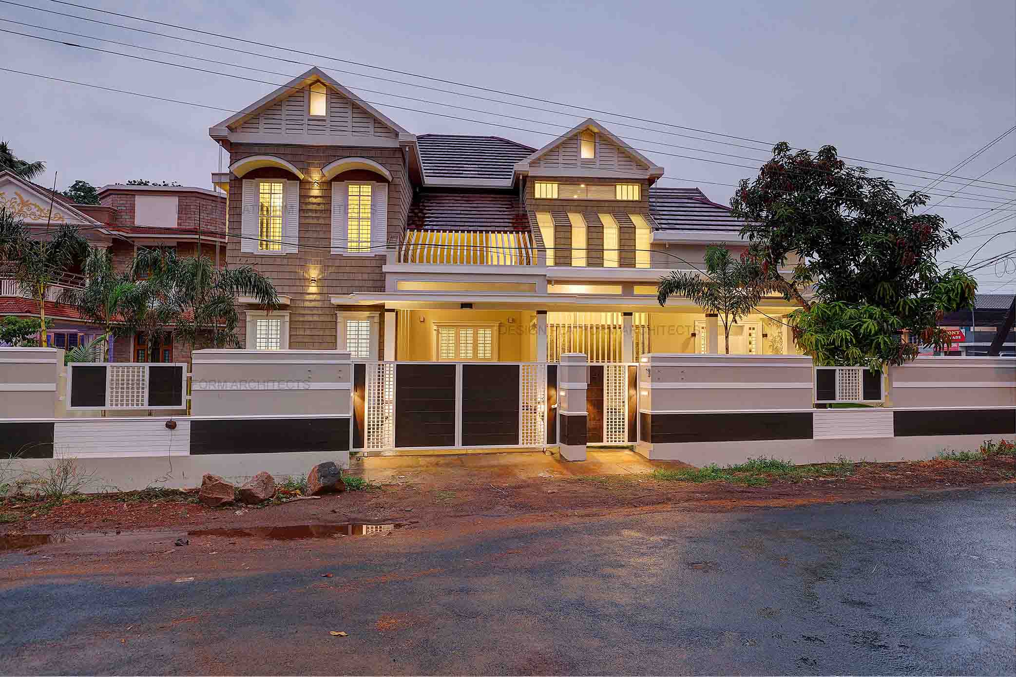 A two sided frontage expresses this cottage style home with an east facing front entrance, having a high roof presence with angled glazed cutouts inviting positive natural sunlight and passage for air made possible through louvers.
