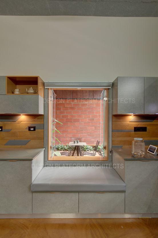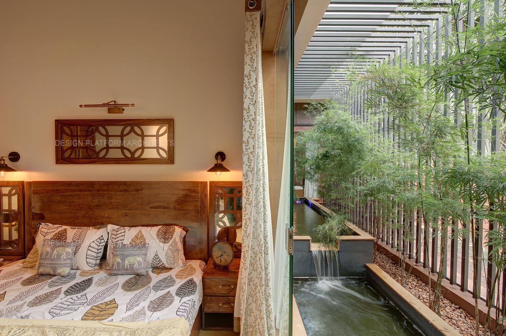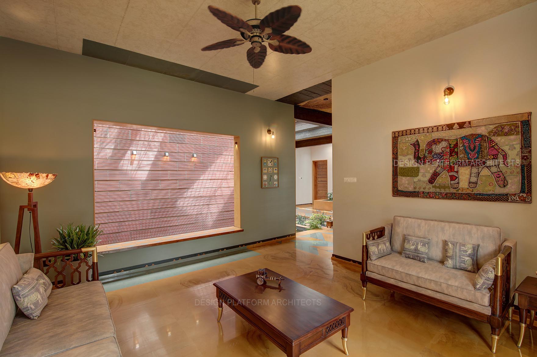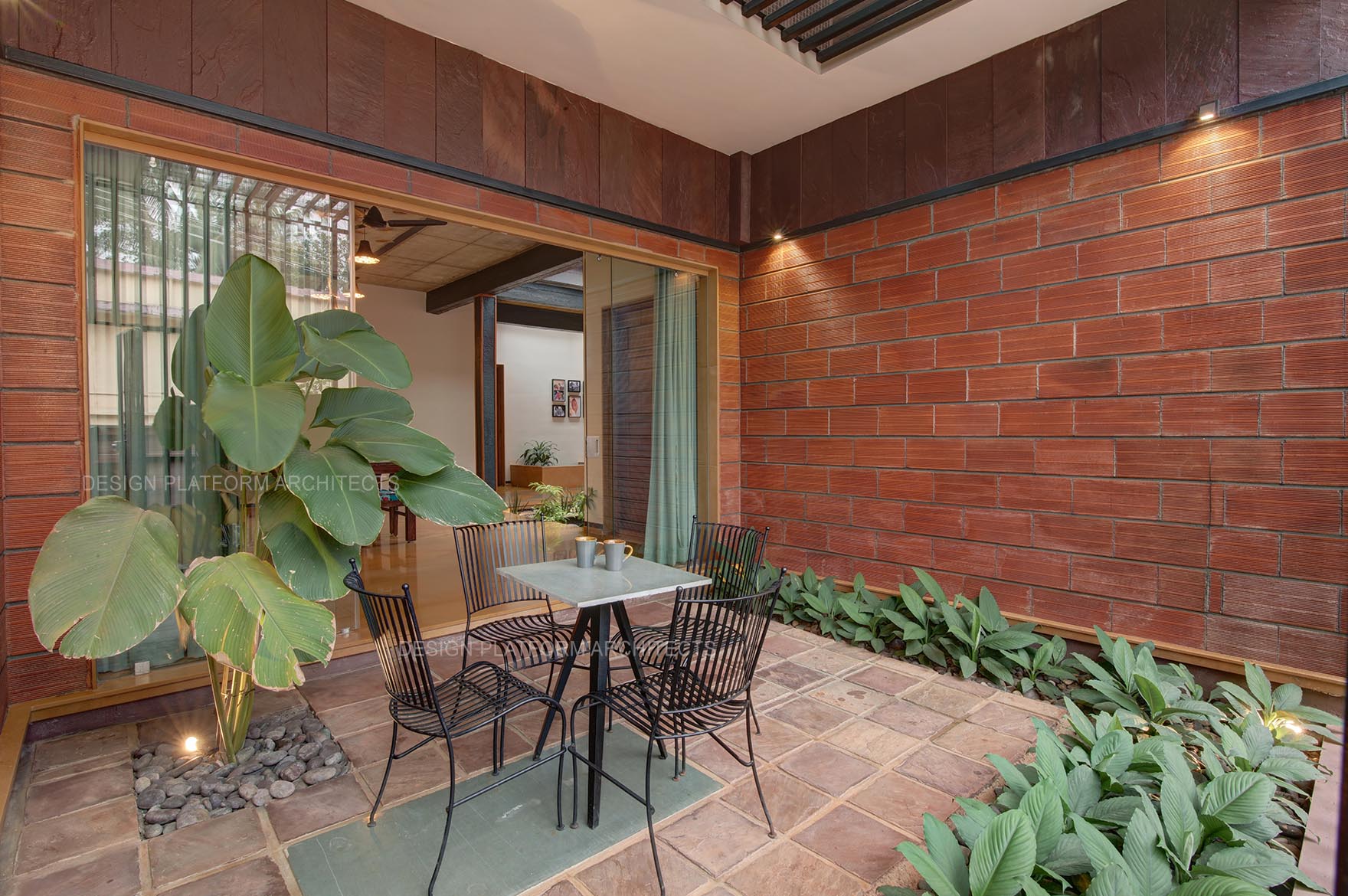 Site has a special character, the neighbourhood context was a temple. The main idea behind the project was how to bring about these character, culture, tradition and adapting the form based on climatic analysis inspired from the temples. The rooms of the house adopt buffer zones inspired from the south indian temples. The movement of the visitor from the busy world cutting across the various buffer zones upto the inner core. Here the inner core symbol (calmness and peace) is symbolised by the central water body.