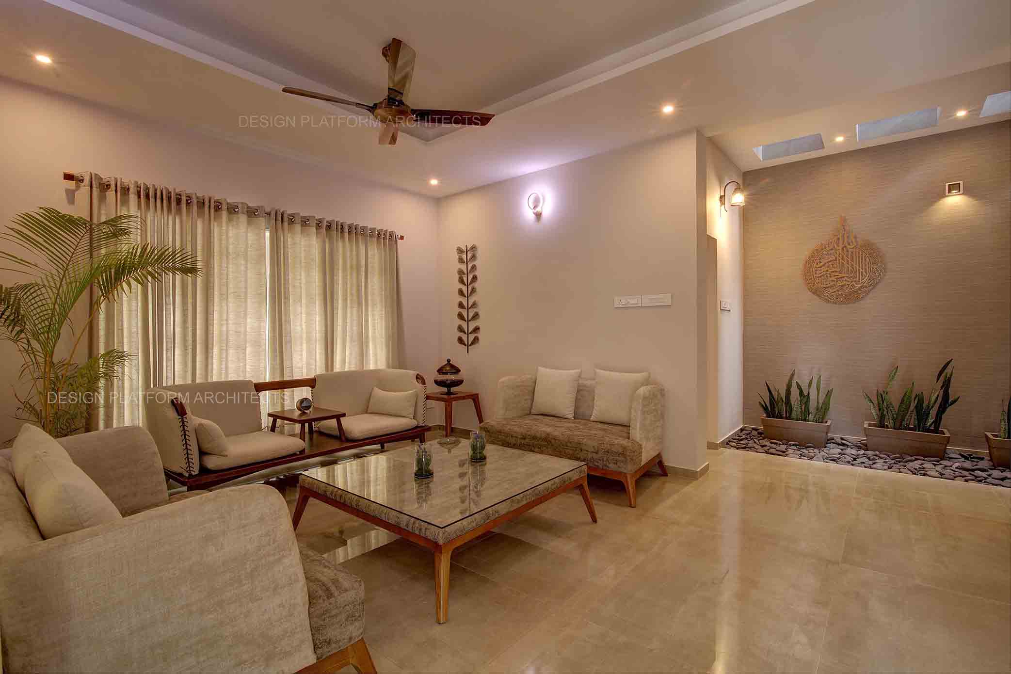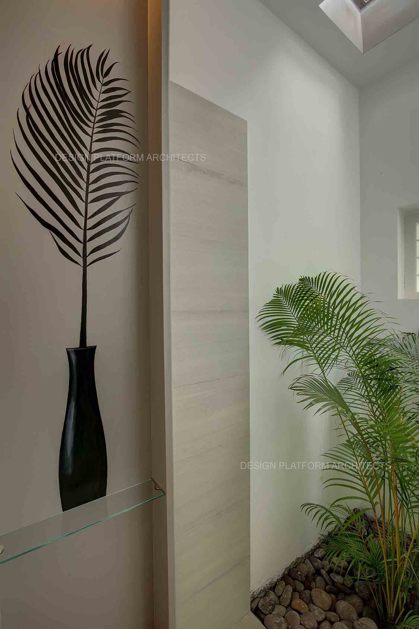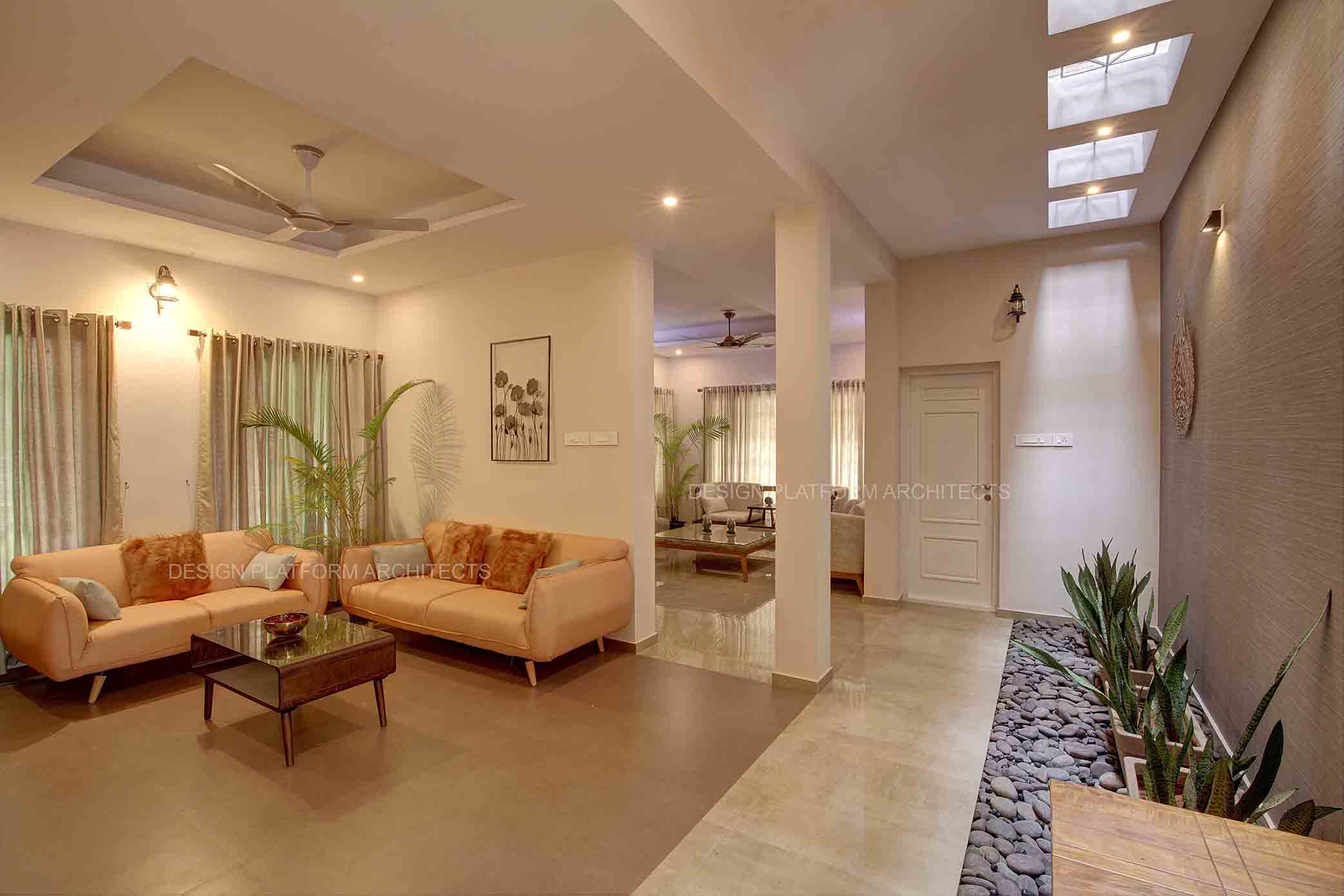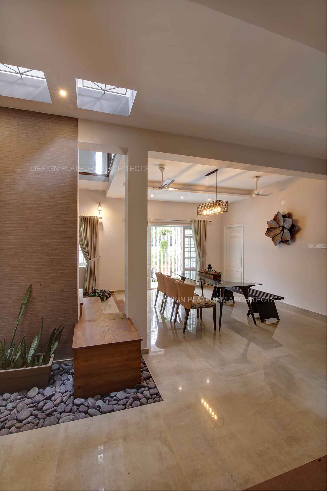 A dewelling space expressed here through its spacy interiors like a sprawling hall with a courtyard and that extending into other rooms and spaces which are themed around elements of bamboo.