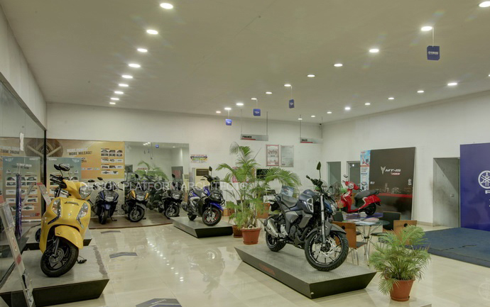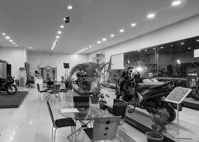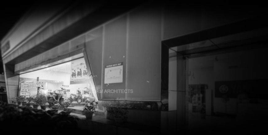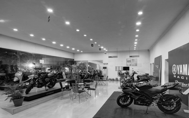 The abstract of moving rider is transformed to dynamism of the building. The silver line brings about the dynamic nature into the building. Thus the simple and static cuboidal form of the building is now shifted to a dynamism blending with the movement of vehicles on the road..