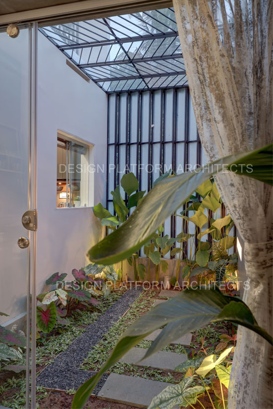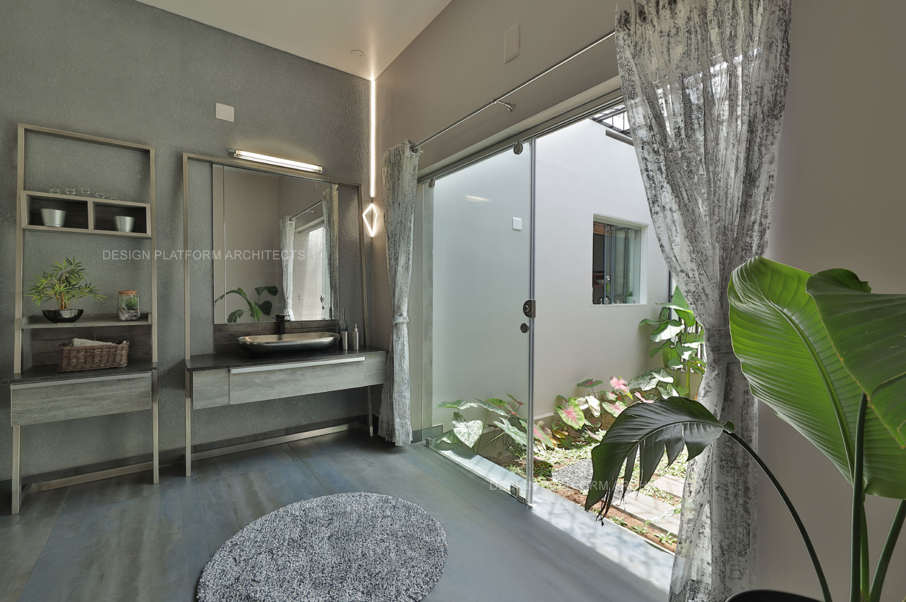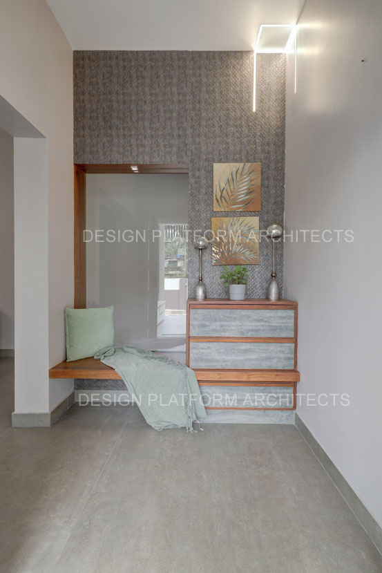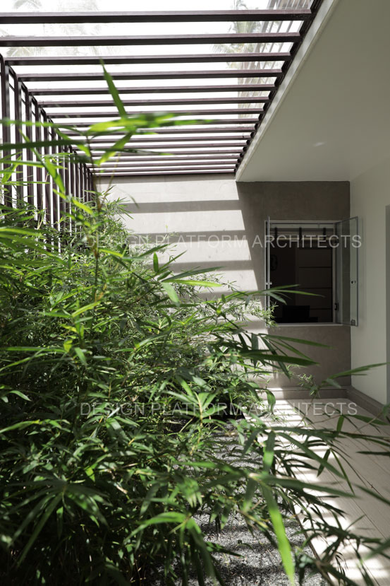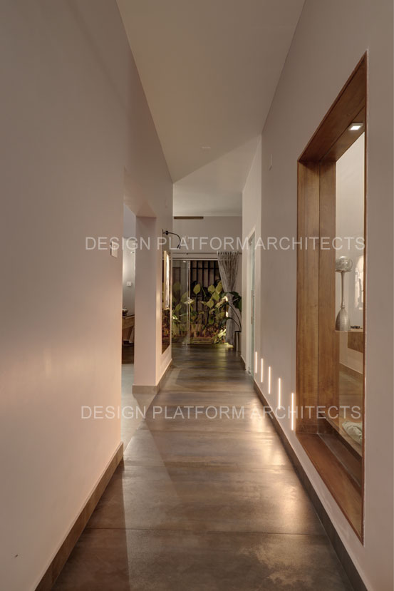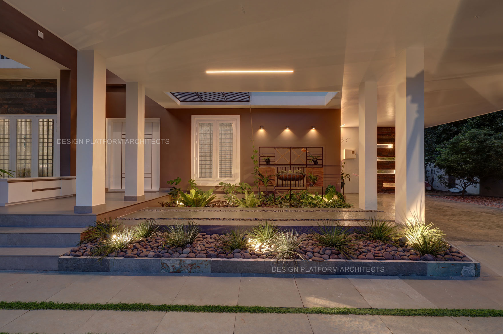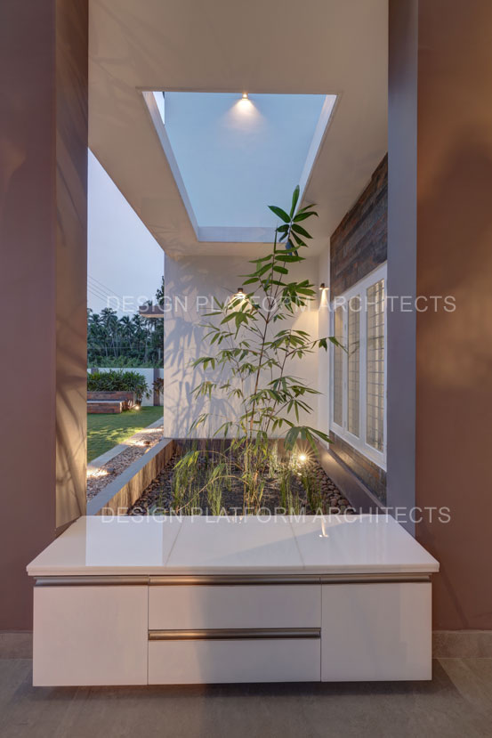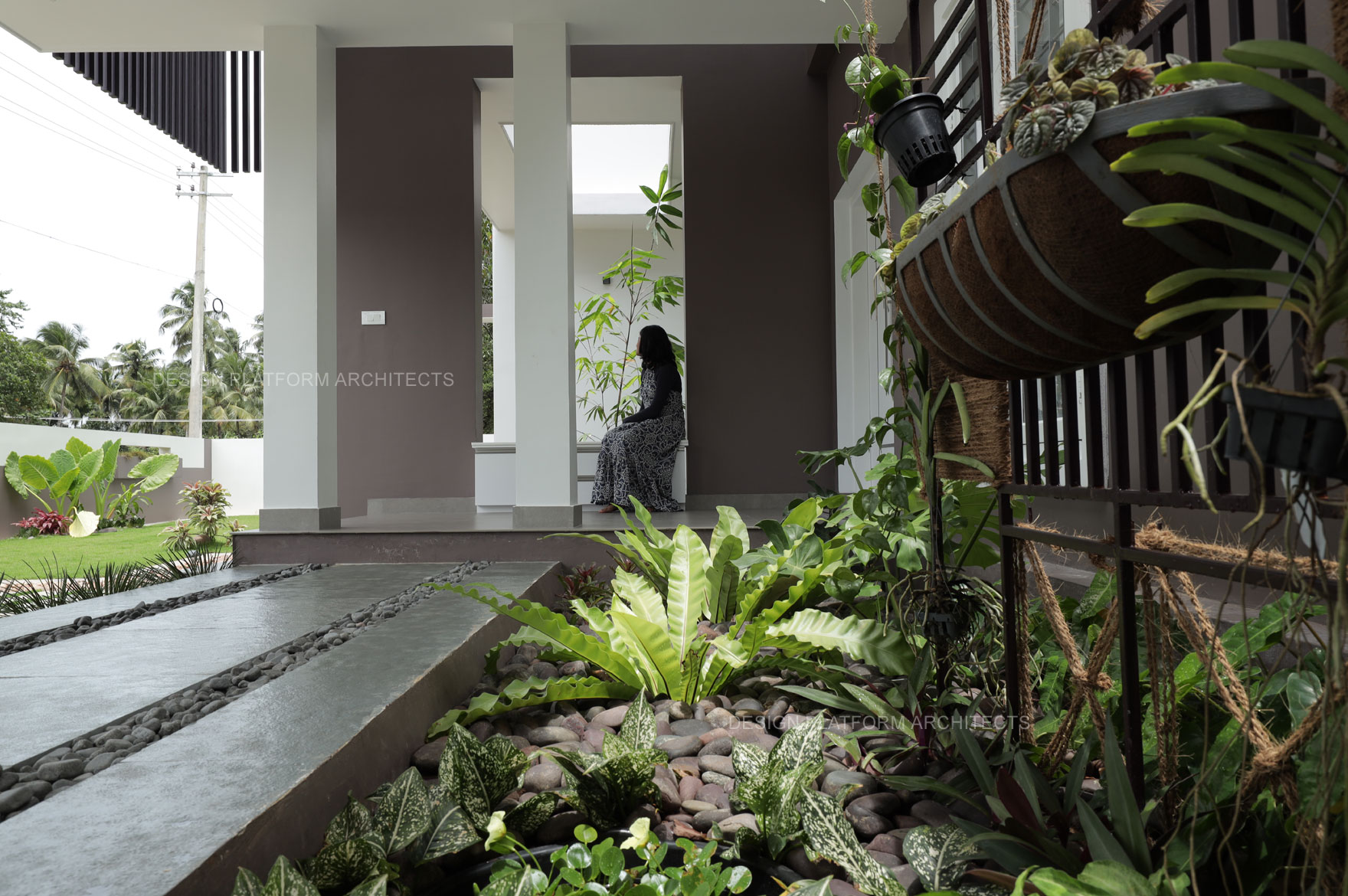 The area we are located is in the west of Kerala. This was a barren piece of land located in Vadanappally, where we had the ability to grow landscape in and around the house. It's an assessment in looking closely at all of the important things a house needs to do and trying to make them calm and exciting. The house is designed for quite lot of things that are important such as cooking, gardening and being in nature. It is also an appreciation for the artists and workers involved in the project.