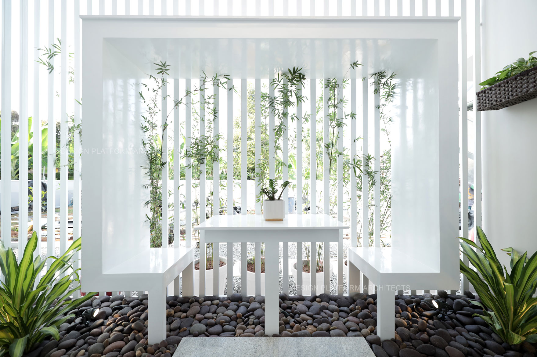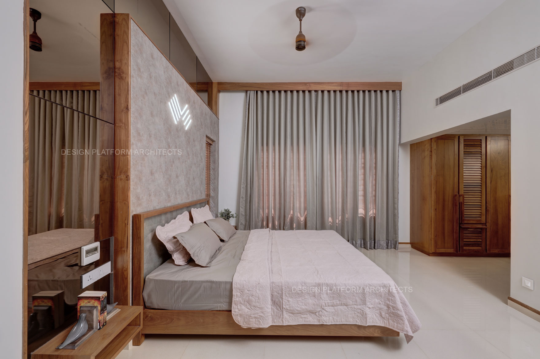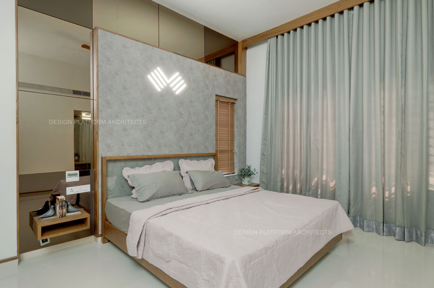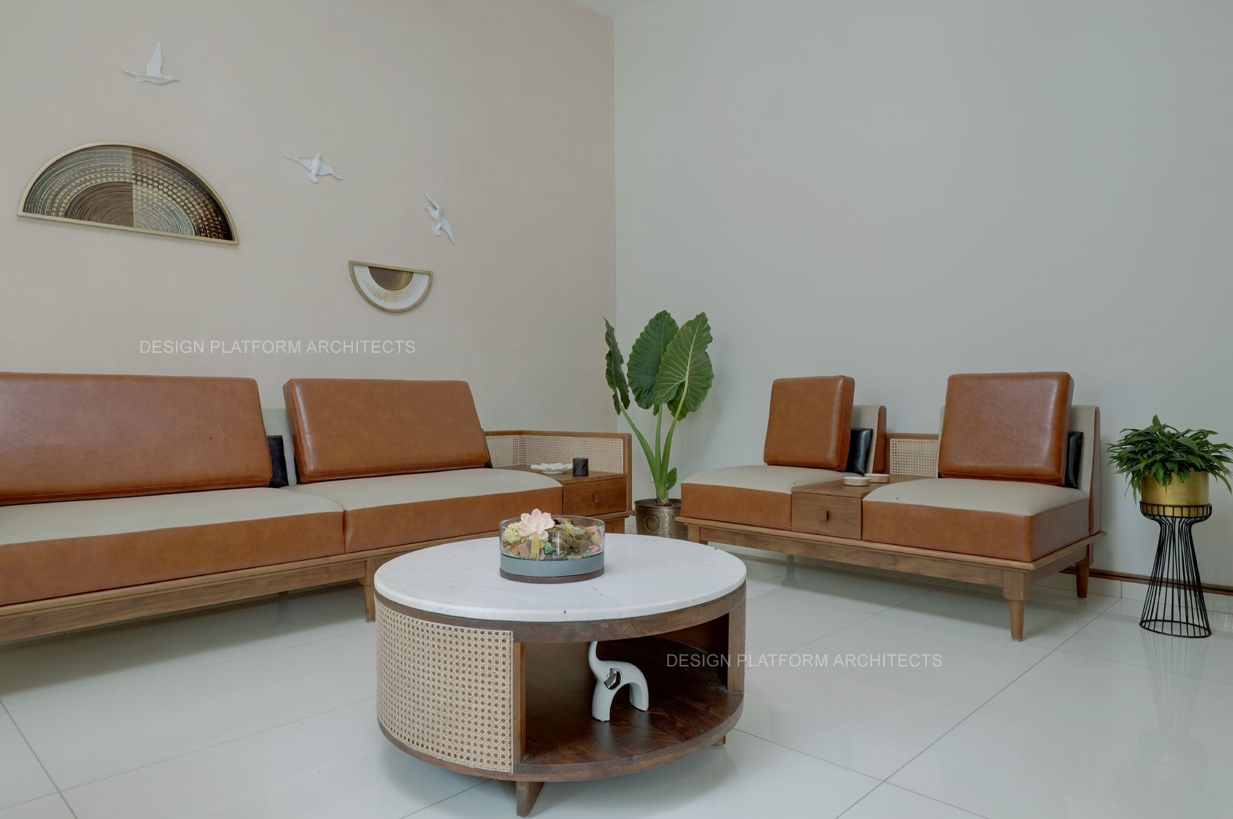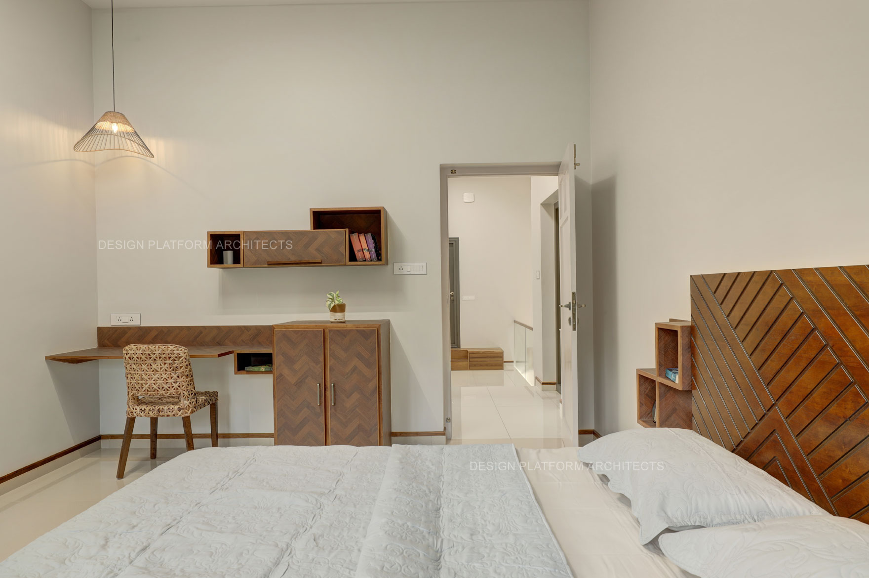 A home speaks about the character who lives in. The project is located in Athirappilly. In the initial stages of site visits we could see extensive growth of bamboos and this was one of the reason to bring in rattan furniture as a design element in the living room. A small garden space is introduced in the powder room along with rustic finish tomsubtle the mood. The staircase is in the centre core of the house hence we had to plan it as a good functional space. The geometric pattern on the dining table is quite exciting by brining the same design element on the chair makes it the reflection of each other.